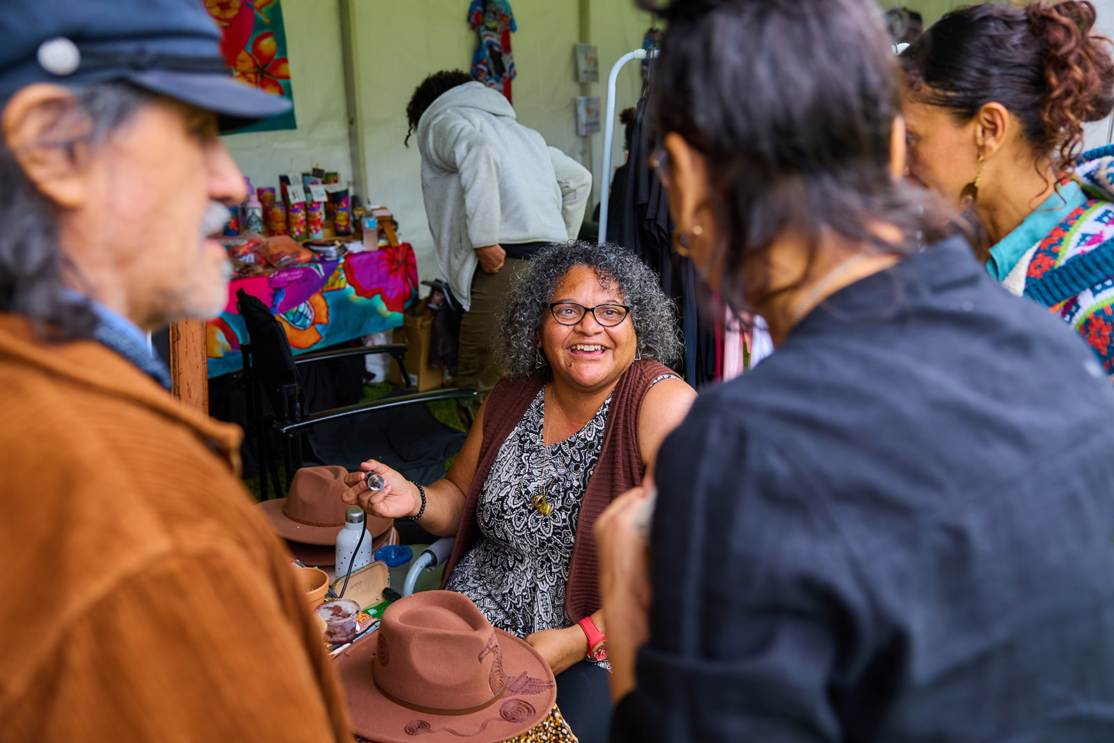 Big Talk One Fire Festival is UMI Art’s largest and most significant event, and it involves bringing together a whole big mob of incredibly talented individuals, to create a day in which we can celebrate all of the creativity, innovation, beauty, resilience and power we have here in our First Nations communities. Our aim is to create a platform for showcasing talents, sharing stories, telling truths – and dancing together.