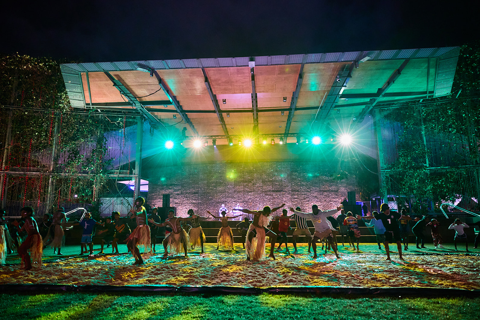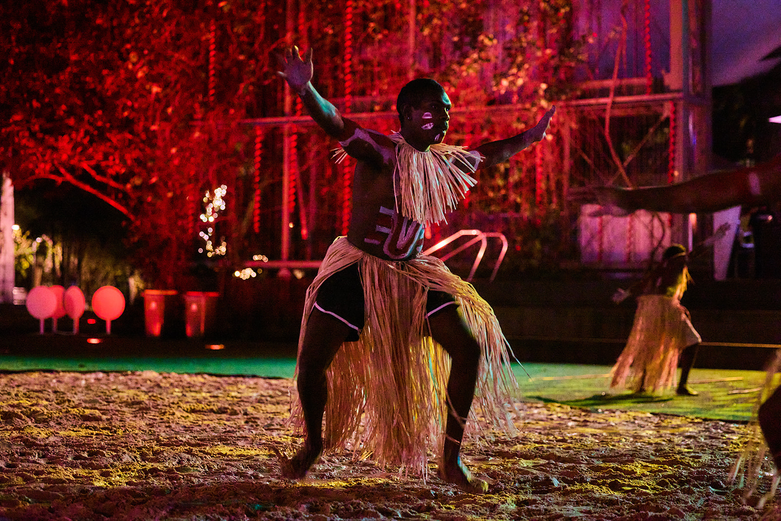 We were blown away by the truly INCREDIBLE dance performances that followed, from dance groups who had travelled from all over the Cape and the Islands to be here in Gimuy for the occasion. While feet were pounding in the dance circle, our workshops tents were also humming with busy hands and lots of yarning! The wonderful Kuranda Weavers led the circle on the lawns, while our Meditation Tent was a haven of peace – away from the crazy array of kids activities! There were lots of lawn chairs and blankets emerging as visitors staked good places on the lawn or nabbed some VIP seating under cover – but luckily the rain held out for us! Sacred Creations’ incredible storytelling led us into the night, in time for Yarrabah’s Djun Djun Jarra to get the crowd up and moving – and the crowd kept building as we crept toward our headline act, Royston Noell, who came back to his own country from busy Sydney to give us an amazing performance, including an exclusive of his not-yet-released new single! Many of our stallholders and food vendors remained trading right up until the lights went down, ensuring the whole park felt alive and buzzing well into the night. As our wonderful MC Leon Filewood drew the evening to a close, the energy of the day remained as the dust settled from the dancers.