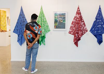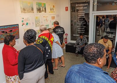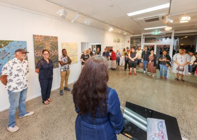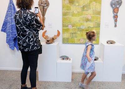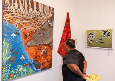 Freshwater Saltwater, a highly anticipated annual curated group exhibition, is a vibrant celebration of the diverse artistic expressions of Far North Queensland’s Aboriginal and Torres Strait Islander artists and communities. The exhibition is based around the holistic existence of Aboriginal and Torres Strait Islander people. Freshwater represents the Aboriginal nations of Far North Queensland, with rivers flowing across the land and through the rainforest from coastal Cardwell to the Cape York Peninsula. Saltwater represents the Island nations and Torres Straight people, surrounded by the ocean.